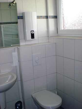Im Badezimmer befindet sich eine Dusche. Ein zusätzliches Gäste-WC ist vorhanden. Die Küche ist komplett ausgestattet mit Geschirrspüler und Mikrowelle. Ein Sat-TV, eine Denon Musikanlage mit CD-Player / Bluetooth gehören ebenfalls zur Ausstattung der Wohnung. Im Kellergeschoß befindet sich ein Waschraum mit Waschmaschine und Trockner. Die Terrasse und der Garten befindet sich auf der Südseite des Grundstücks. Ein PKW-Stellplatz ist vorhanden.